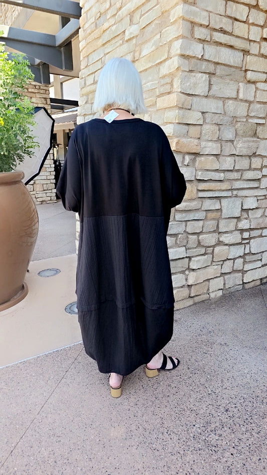 Kedem Sasson Black/Tan Dot Pullover Tie Dress B704
