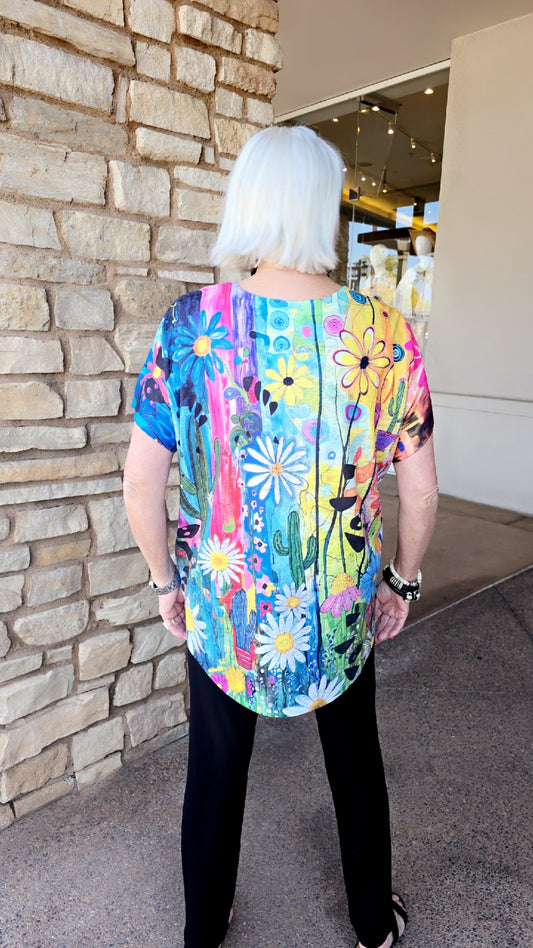 Et' Lois Flower/Cactus Printed V-Neckline Tee C2022-1277