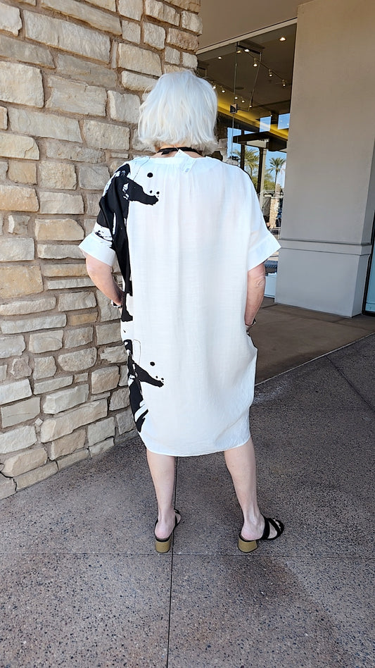 Terra White/Black Oversized Pullover Pocket Dress T2632