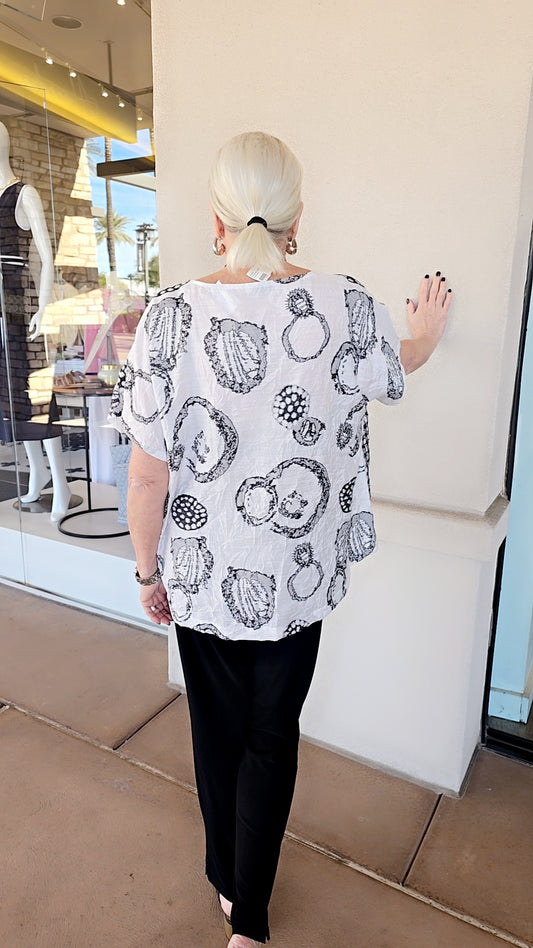 Jess & Jane White/Black Tango Chiffon Tunic 63-2199X