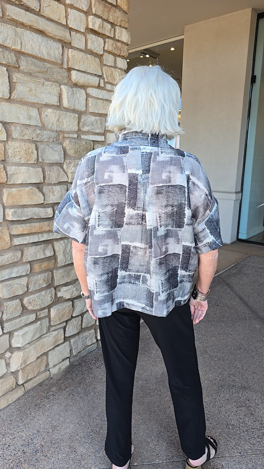 Terra Grey Block 2 Pocket Button Front Top T4653
