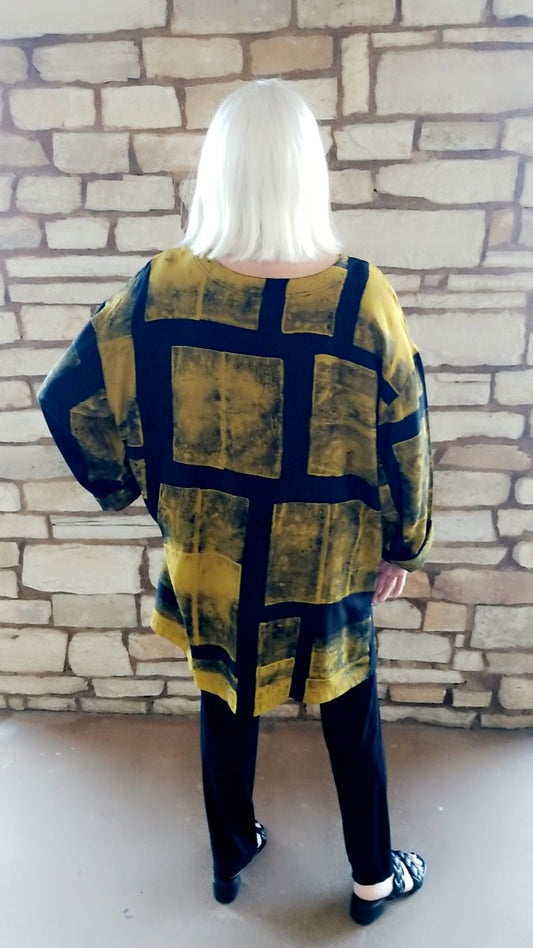 Adverb Plus Size Mustard L/S Boxes Top BX7049R