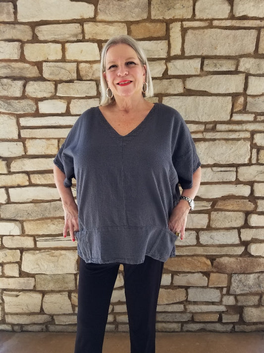Oh My Gauze One Size Washed Black V-Neckline Top LibraRegular price $72.00Regular priceUnit price per-