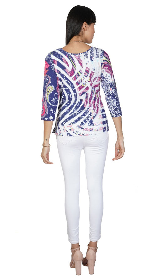 Parsley & Sage Plus Size Multi Blues Sheena V-Neck Top 20W233C5P
