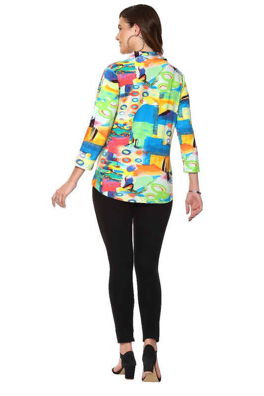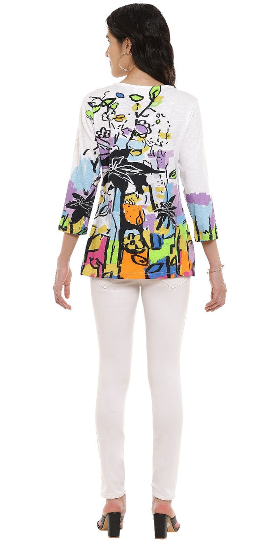 Parsley & Sage Plus Size White/Multi Liz Asym Split Tunic 22T13T5P