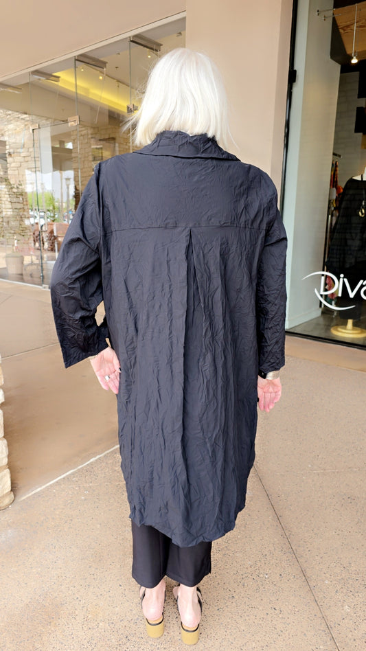 Chalet Black Crinkle Plus Size 2 Pocket Camille Long Shirt T25880