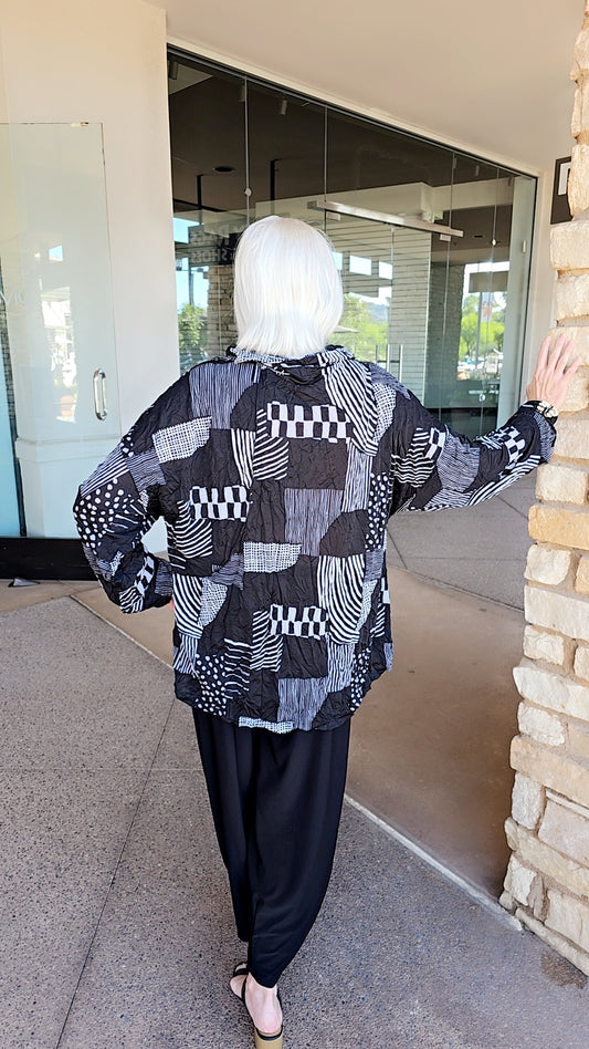 Chalet Plus Size Mineral Wash Black/White Crinkle Dara Top CM42214