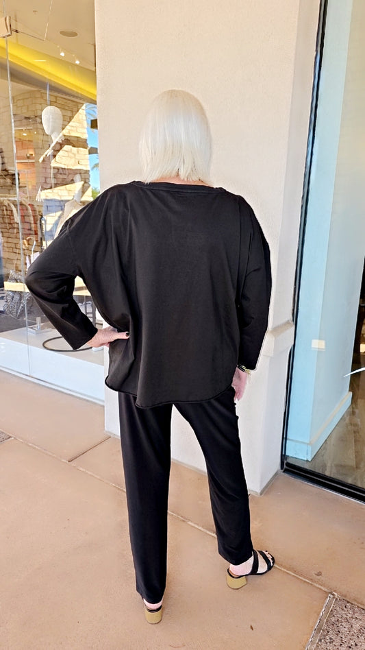Igor Black Pullover 2 Pocket High Slit Tunic W25-76
