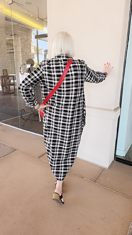 Baci Black/White Plaid Button Front Shirt Dress 12519OL62