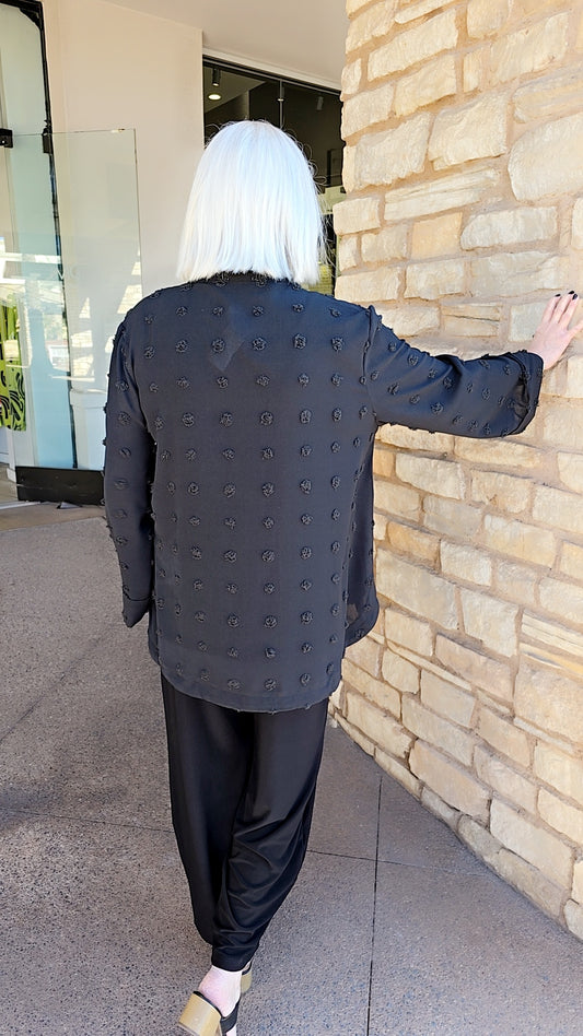 Baci Black Crinkle Button Front-Button Back Jacket 11535GB62