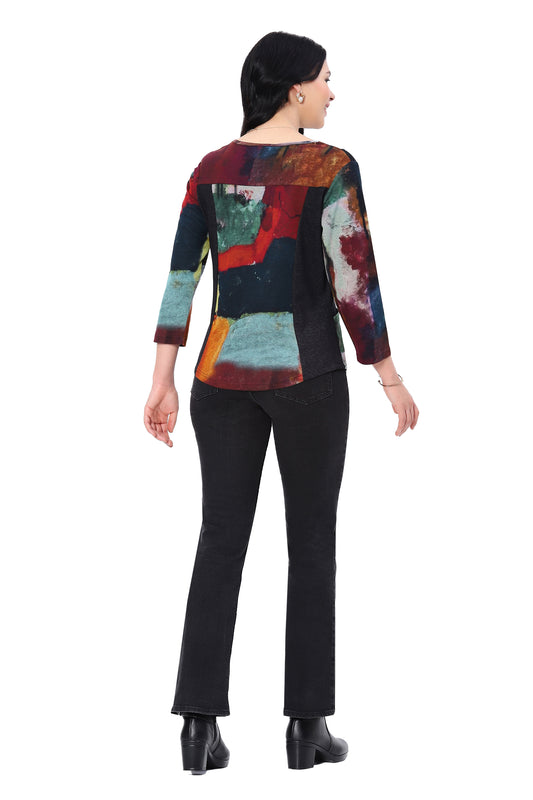 Parsley & Sage Plus Size Multi Print Kelsey Pullover Top 25W204C2P