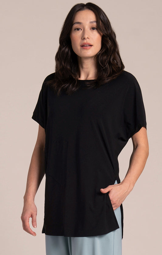 Chalet Black Crinkle Plus Size 2 Pocket Camille Long Shirt T25880