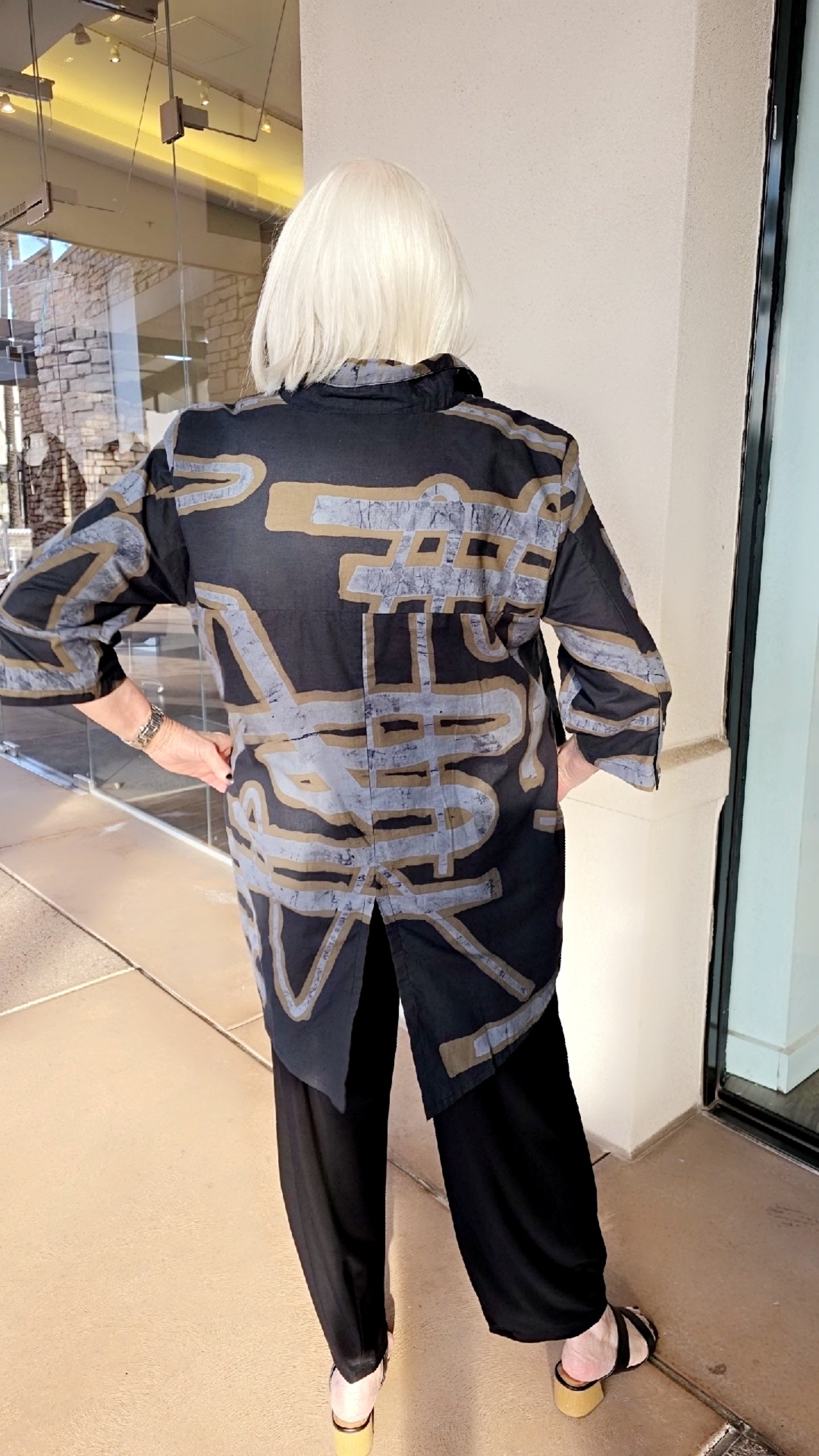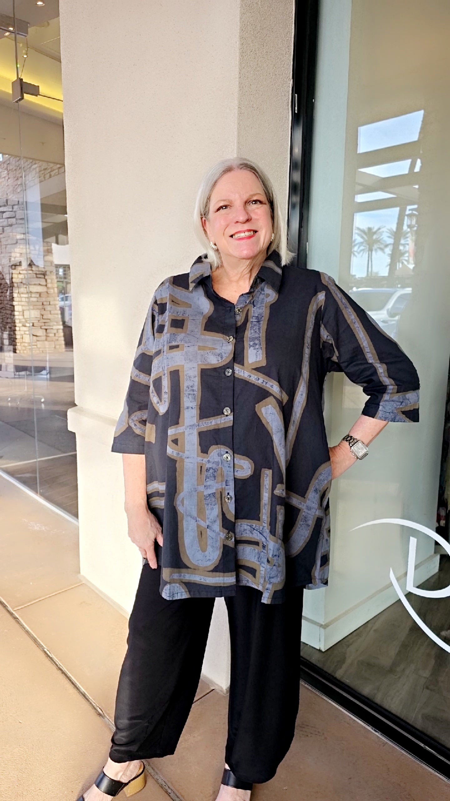 Expertly designed for plus size women, the Adverb Scribe Well shirt features 3/4 length sleeves, button front closure, and thoughtful details like side pockets, a spread collar, a high low hemline, and a slit back.