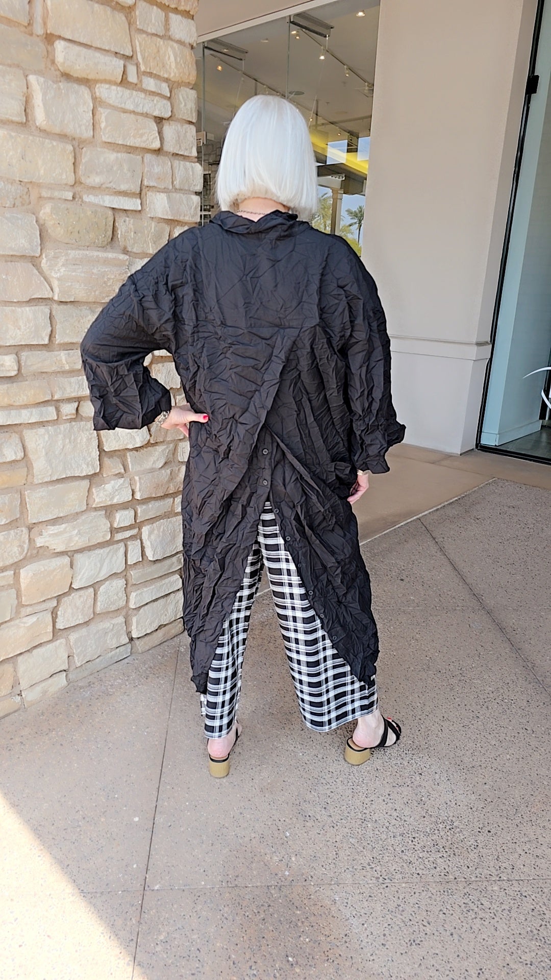 Baci Black Crinkle Button Front-Button Back Jacket 11535GB62