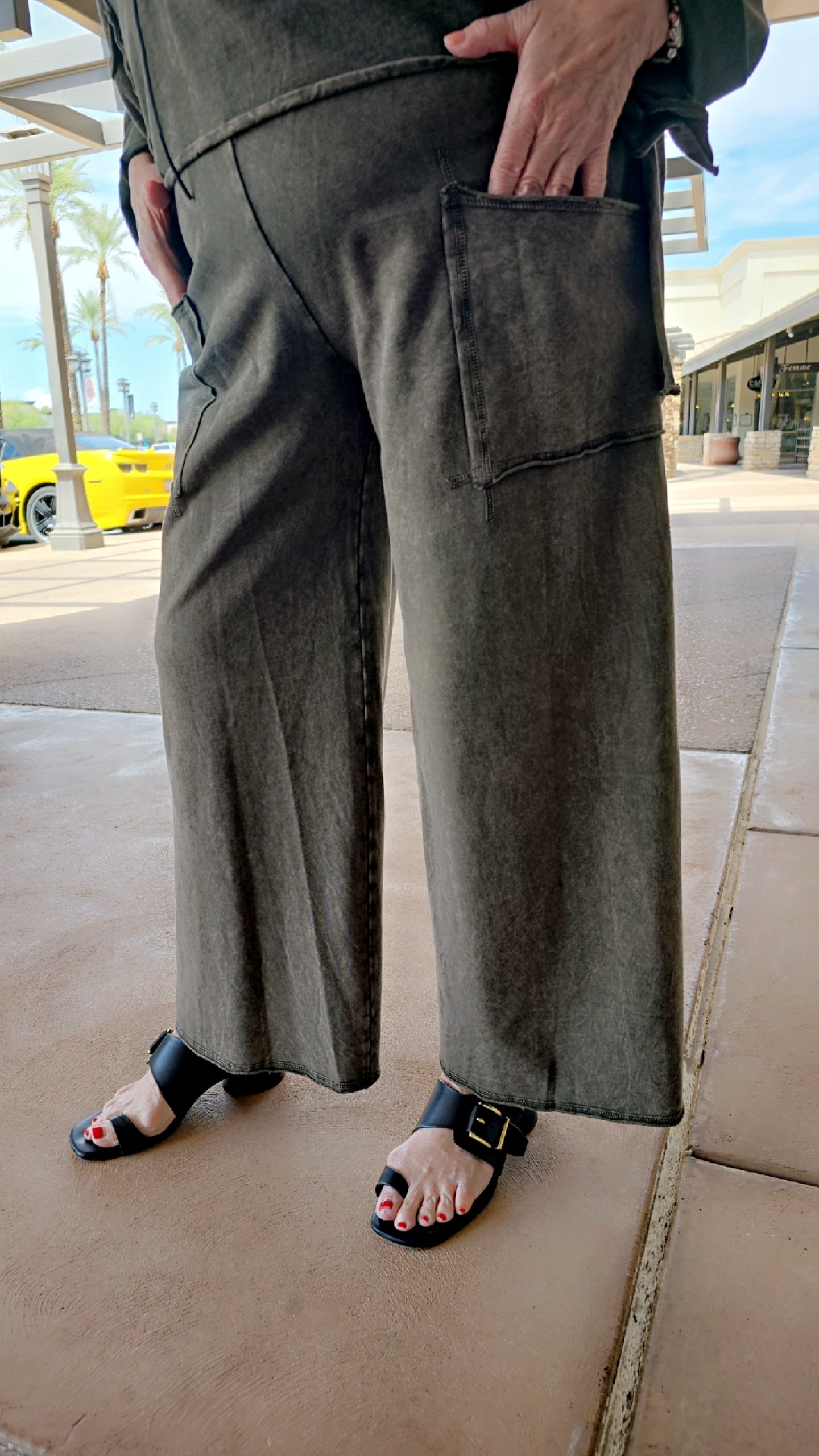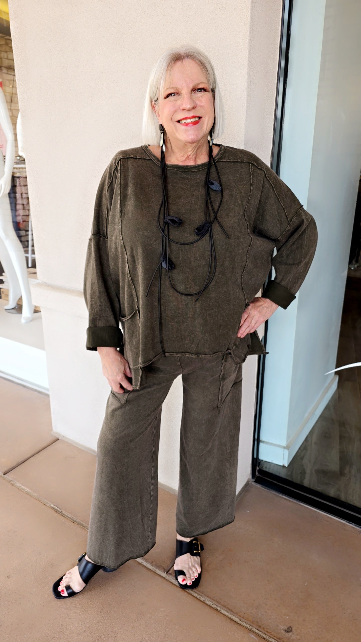 This plus-size Olive Cotton Lani pant features a comfortable pull-on design with spacious large pockets for convenience.