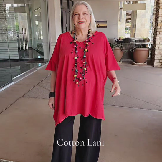 Cotton Lani Red One Size Oversized V-Neckline Tee J715