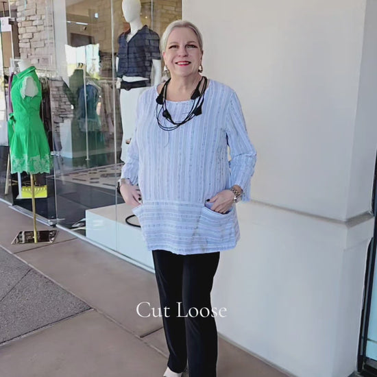 This relaxed pullover top from Cut Loose combines natural linen and cotton for breathable comfort and effortless style. Featuring a classic round neckline, three-quarter sleeves, and two functional front pockets, it's designed for versatile everyday wear. The White-colored fabric offers neutral sophistication that pairs seamlessly with your existing wardrobe.