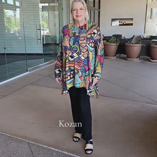 Kozan Plus Size Zola Justy High Low Tunic features a pullover design with a round neckline and long sleeves, offering both comfort and style in a flattering silhouette.