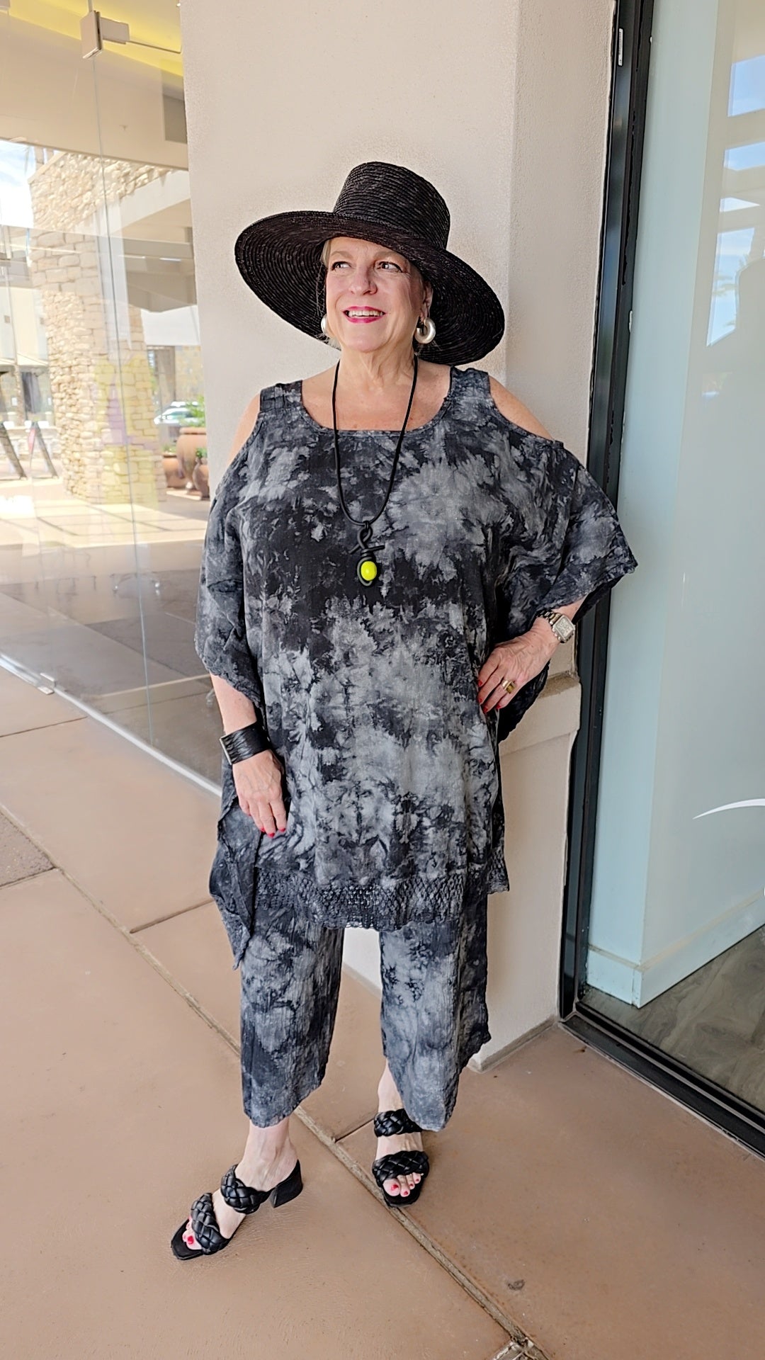 Manta Del Lago Plus Size Washed Black Cold Shoulder Top 3209