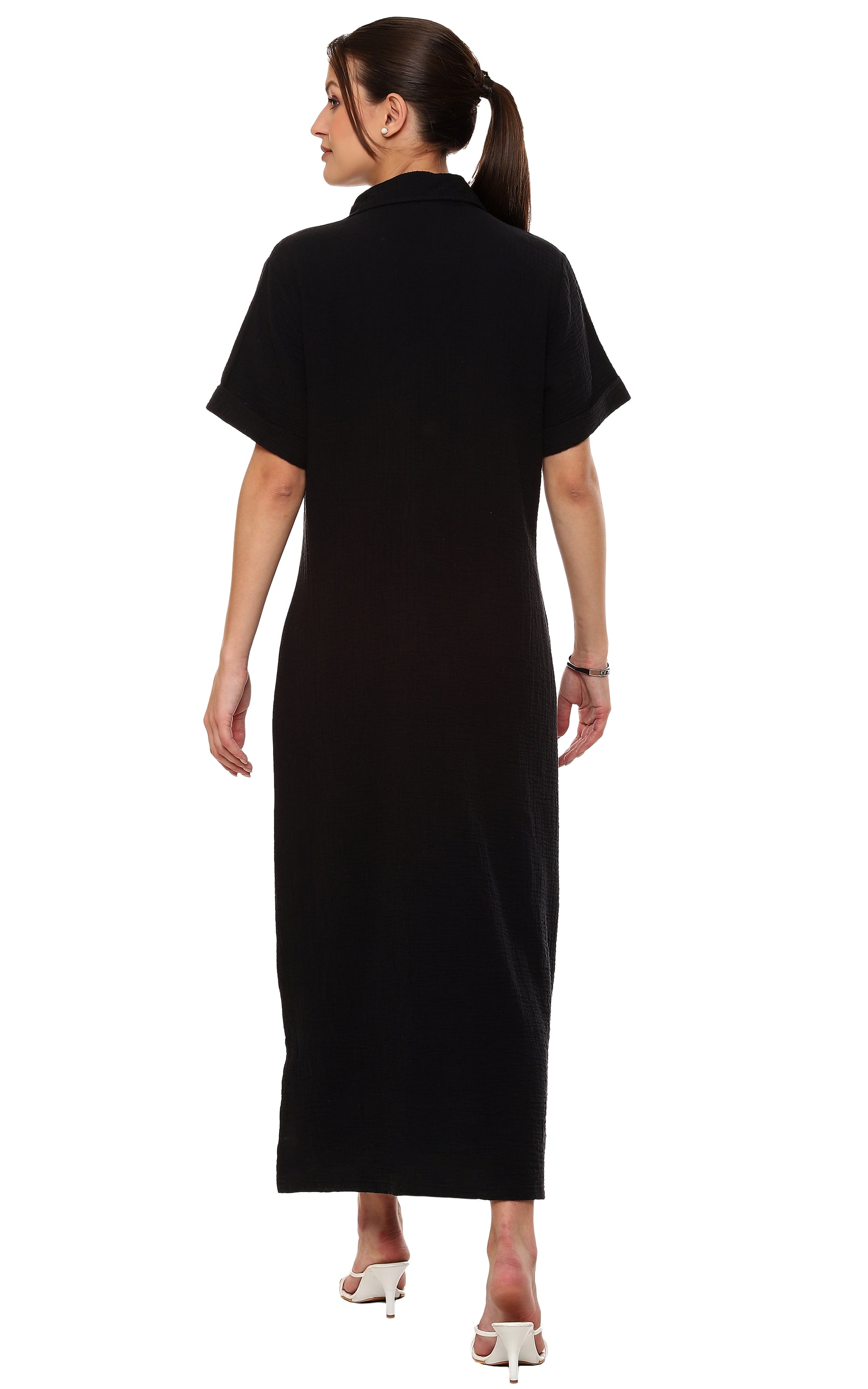 Parsley & Sage Plus Size Black Cotton Dress, Button Front, V-Neckline, Short Sleeve, Front Pockets