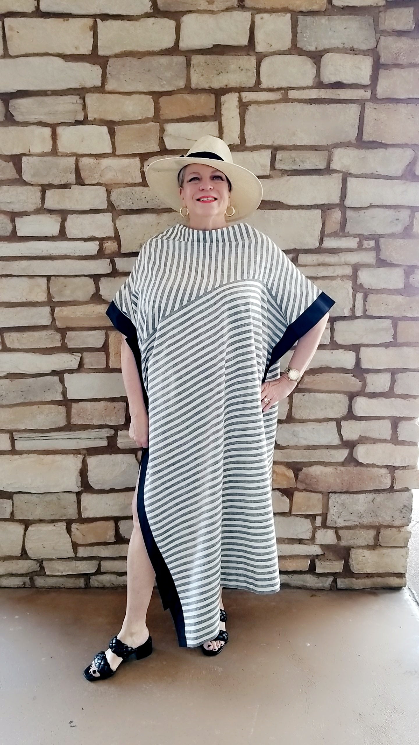 Riteshkumar Striped Cotton Dress/Tunic, Pullover Style, Short Sleeve, One Side with High Slit
