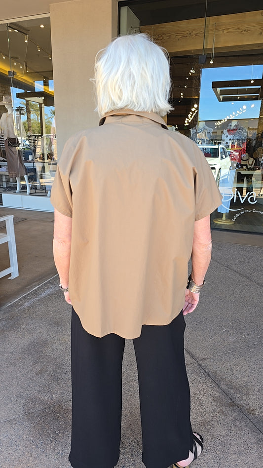 Terra Grey Block 2 Pocket Button Front Top T4653