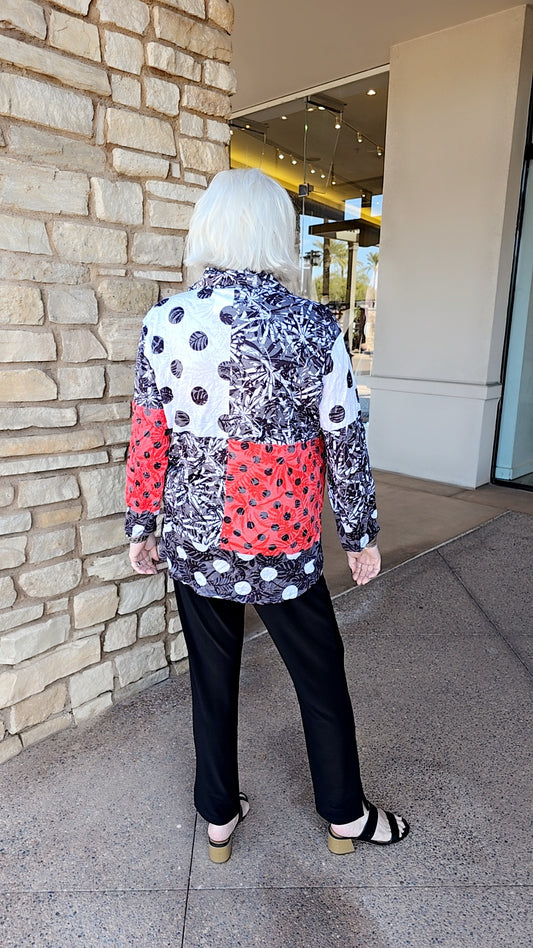 Shana Black/Wht/Red Crinkle Dot Print Button Front Shirt 26022